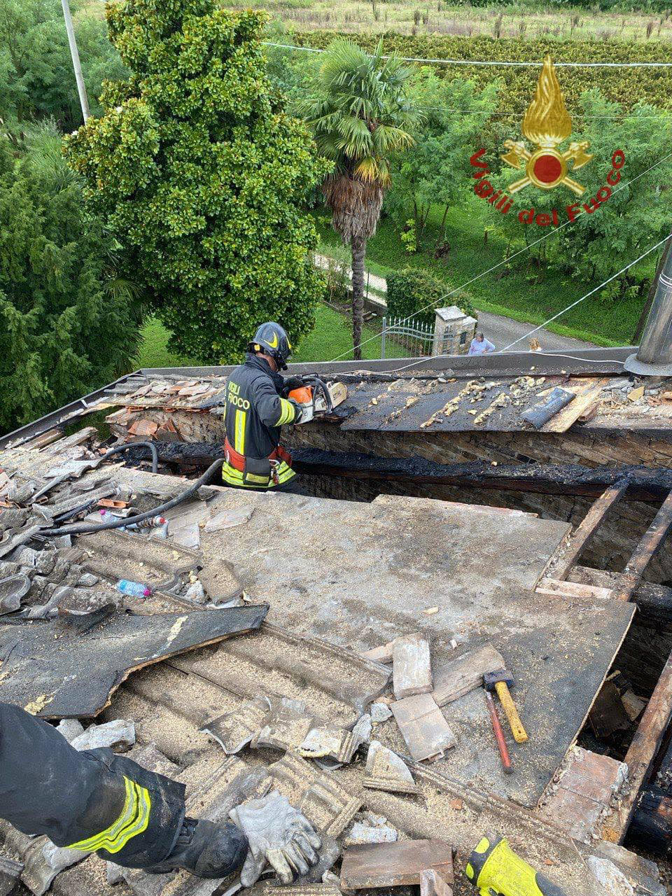 Nella mattinata odierna squadre dei Vigili del fuoco provenienti dalla Sede Centrale sono intervenute, con l’ausilio dell’autoscala, nel Comune di Villorba in via Due Acque per l’incendio del tetto in legno di un’abitazione privata. Le fiamme hanno interessato due travature in legno creando importanti danni alla copertura. Tra le cause non si esclude quella del fulmine. La tempestività delle squadre dei Vigili del Fuoco ha permesso che l’incendio non si propagasse al resto dell’abitazione. Nessun ferito.