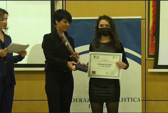 | “Abbiamo ascoltato discorsi di personalità importanti del mondo del ciclismo come il presidente della FCI e il presidente del CONI Regionale Veneto” ha raccontato Ilaria. “Si è parlato dell’andamento del ciclismo giovanile e di come, nonostante la ripartenza, sia ancora un po’ in sofferenza e poi è arrivata la parte più emozionante, la premiazione delle categorie. Poco prima di salire sul palco ero un po’ tesa ma poi è passato tutto, mi sono solo goduta quel bel momento. Ciò che mi è piaciuto di più è stato vedere tutti i campioni di quest’anno, anche di discipline come la BMX, il downhill e il cross country. Certo non c’erano tutti perché già impegnati nei ritiri con le squadre.” Livielle Ongarato ha spiegato di aver ritrovato tutte le persone che vivono il suo stesso mondo e dice: “E’ stata una bella esperienza. Ho vissuto in Veneto fino ai nove anni e la maggior parte delle persone presenti ha corso insieme a me per molti anni, è stato bello rivedere tutti. Essere premiate è sicuramente un’esperienza gratificante e questo evento è sicuramente stato un bel modo per ricordare i risultati più importanti della stagione”. Tra le personalità presenti, in prima fila c’erano il Presidente della FCI Cordiano Dagnoni e il Presidente del Comitato Regionale Veneto, Sandro Checchin. Poi Massimo Ghirotto, Presidente del Settore Fuoristrada, Diego Bragato, collaboratore tecnico della nazionale italiana e Marco Zen, componente della Struttura Tecnica Nazionale.