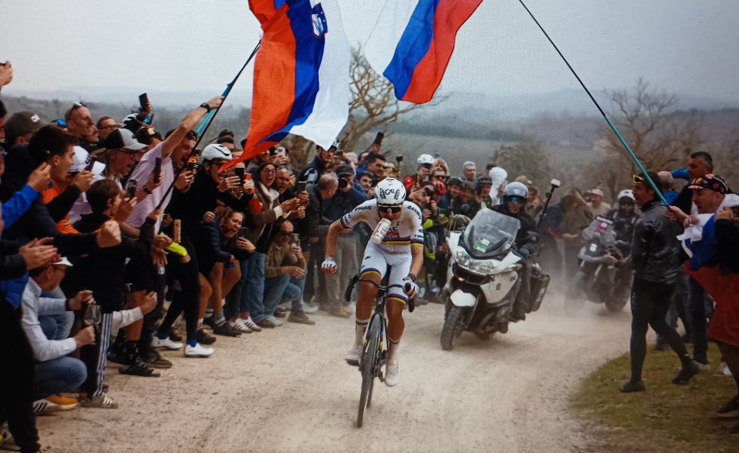 Il tratto del Monte Sante Marie ha scritto ancora una volta la storia della corsa. Proprio su questo sterrato Pogacar ha lanciato l’azione che ha spezzato il gruppo dei favoriti.